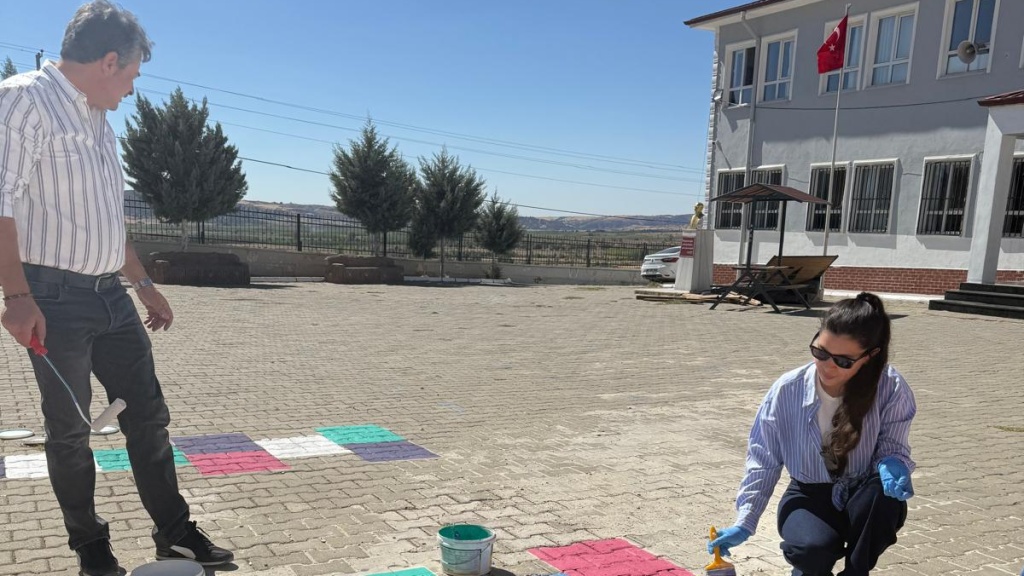 OKULUMUZ ÖĞRETMENLERİ TARAFINDAN ÇOCUK OYUN ALANLARI BOYAMA...